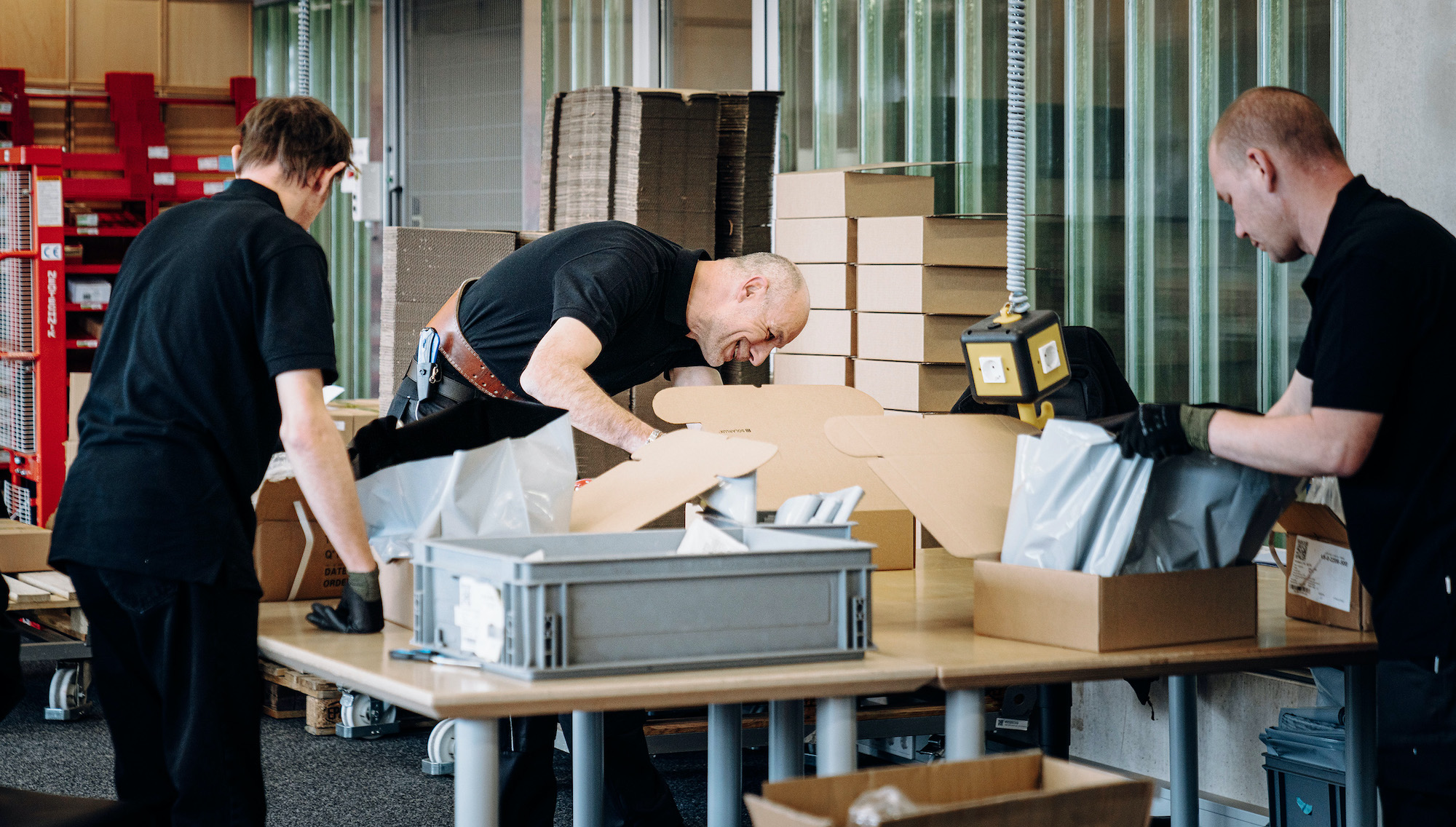 Seit rund anderthalb Monaten packen sie kräftig mit an: zehn Mitarbeiter der Osnabrücker Werkstätten, die nun direkt die beim Meller Unternehmen Solarlux in der Montage und in der Logistik arbeiten. Derzeit sind es zehn Männer im Alter von 21 bis 58 Jahren. Sie sind beschäftigt bei der Heilpädagogischen Hilfe Osnabrück, sorgen allerdings nun direkt auf dem Solarlux Campus beispielsweise dafür, Produkte sicher zu verpacken oder Zubehörteile zusammenzustellen.
