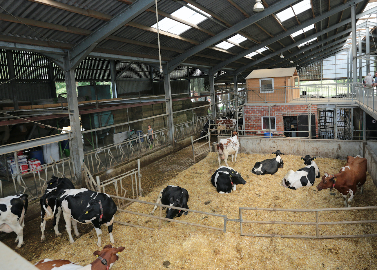 Die rund 230 Kühe entscheiden selbst, ob sie fressen, liegen oder sogar, ob sie das automatische Melksystem benutzen möchten. Dies alles können die Besucher von einer großen Plattform im Stall aus beobachten.